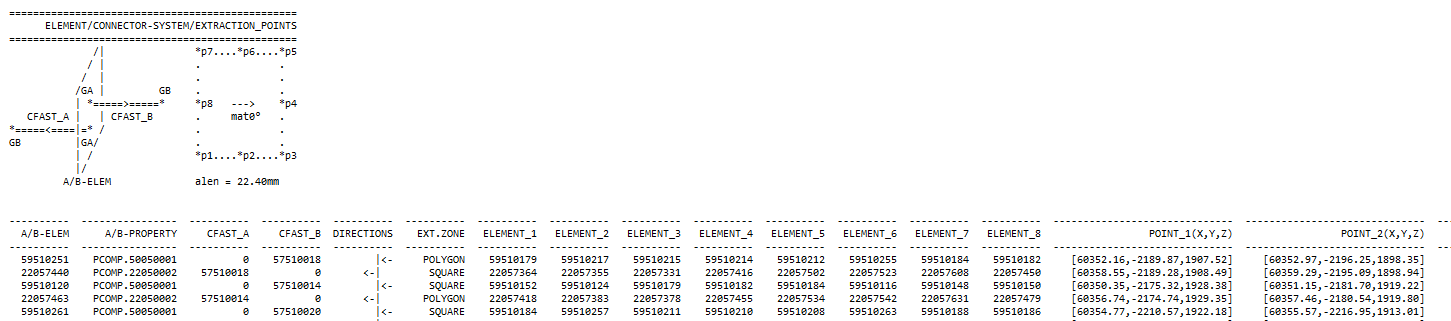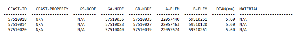“elem 1 id”, “elem 2 id”: fastener’s solver ID.