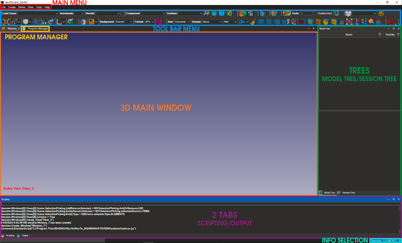 Below, you can see a depiction of the main interface structure, which is divided into several zones. This layout has been designed to optimize user experience by organizing key functionalities into easily accessible areas. Understanding the different zones of the interface will help you navigate through NaxToView efficiently and make the most out of its features.