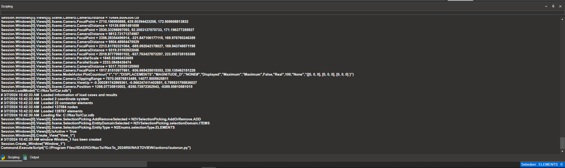 The Scripting tool features an embedded Python console that enables users to execute Python commands, launch scripts, and perform application functions.