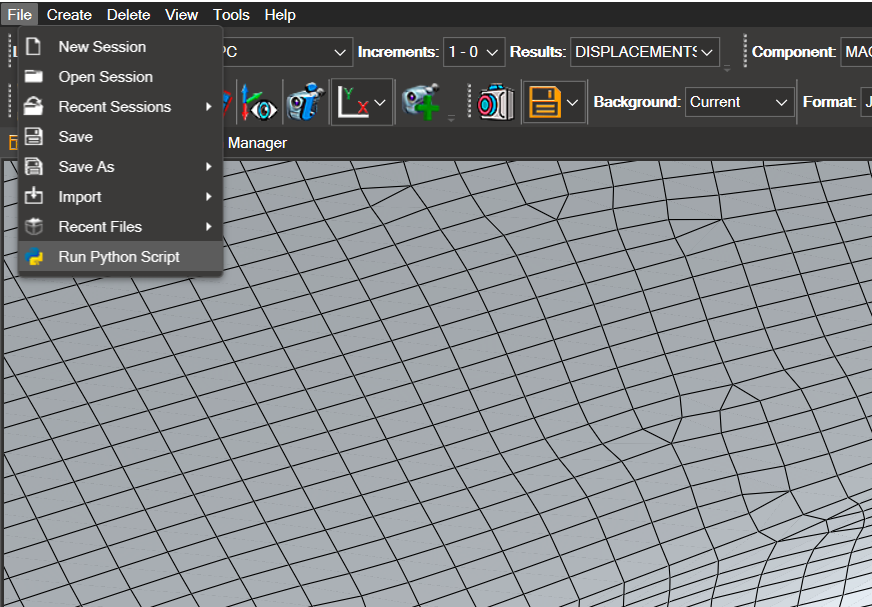 Load model in the newly created view. Session.Windows[0].Views[1].LoadModel1FEM(“ida22032//Models//wind3.op2)