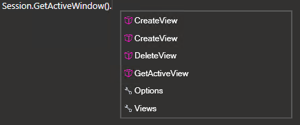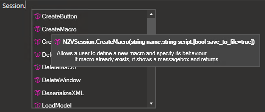 The scripting IDE also comes with an autocomplete feature for every method and attribute that is inside Session and its children.