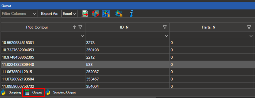 Once the selection is made, all results will be displayed in the Output table.