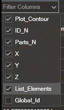 Simply check the columns you want to display and uncheck those you do not. You can filter by plot contour, element or node IDs, properties, materials, etc.