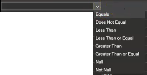Clicking the dropdown arrow allows you to filter by: