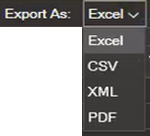 You can export the visible information in the table in Excel, CSV, XML, or PDF format.